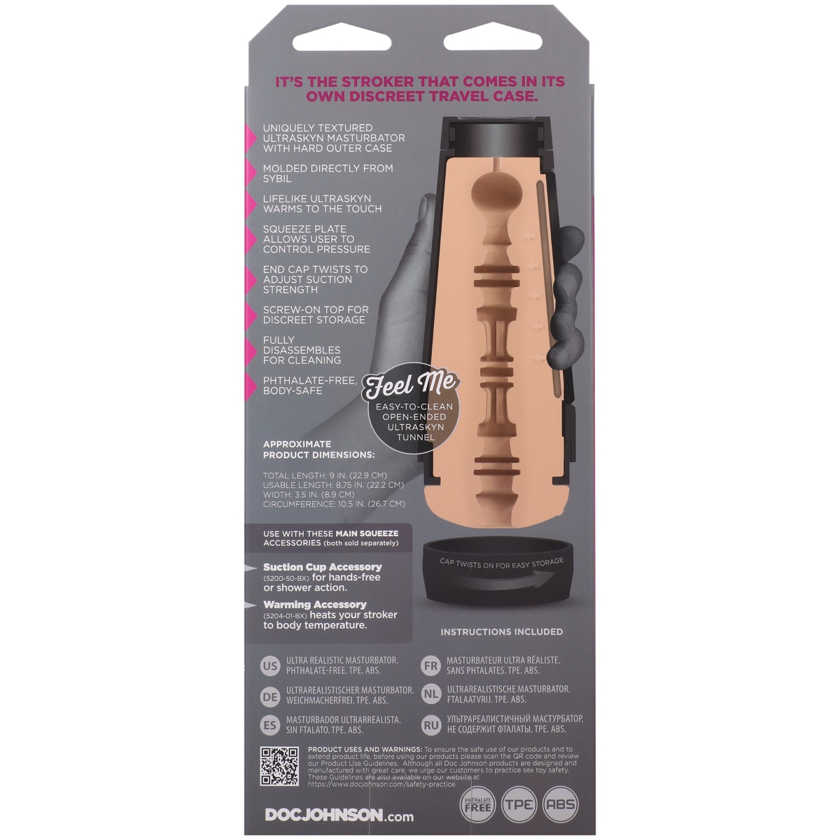 Sybil has joined the Main Squeeze lineup with a variable pressure hard-case stroker molded directly from her body. Handcrafted in lifelike ULTRASKYN Sybil’s Main Squeeze features a tight textured interior that warms to the touch and feels just like the real thing. Approximate Product Dimensions: Total Length: 9 in. (22.9cm)Usable Length: 8.75 in. (22.2cm)Width/Diameter: 3.5 in. (8.9cm)Circumference: 10.5 in. (26.7cm)
